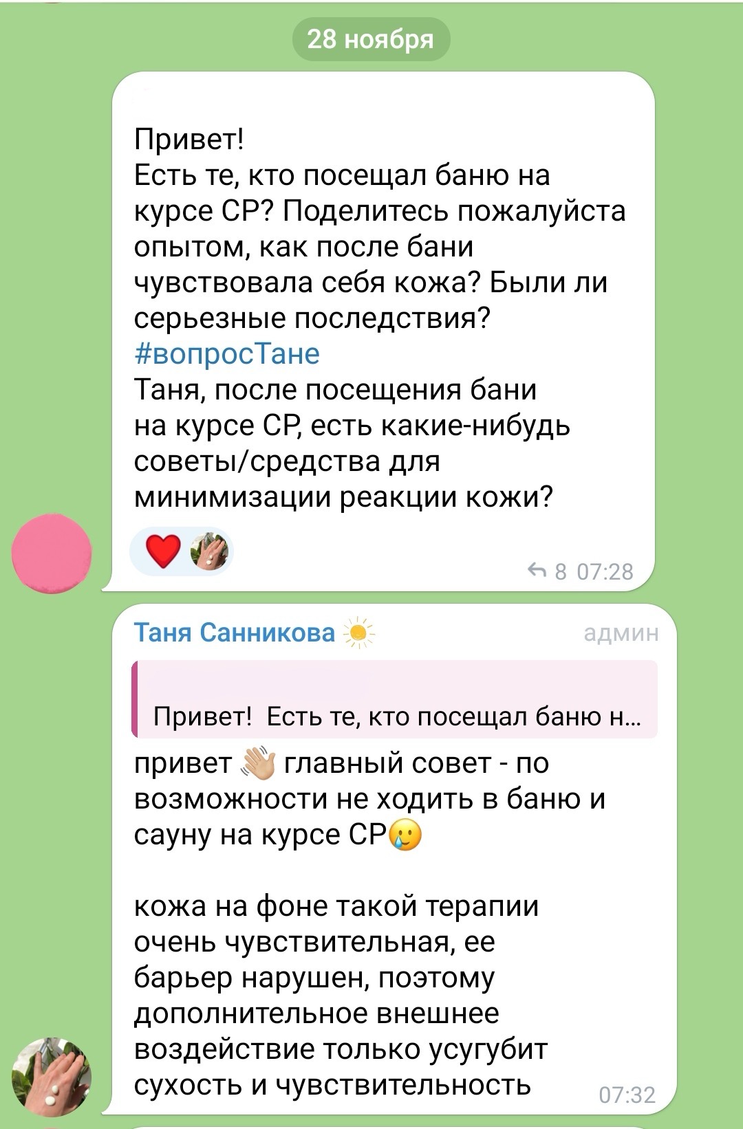демо версию личного кабинета, где будут проходить наши текстовые консультации ты можешь посмотреть по ссылке >> https://demo.sanni.skin