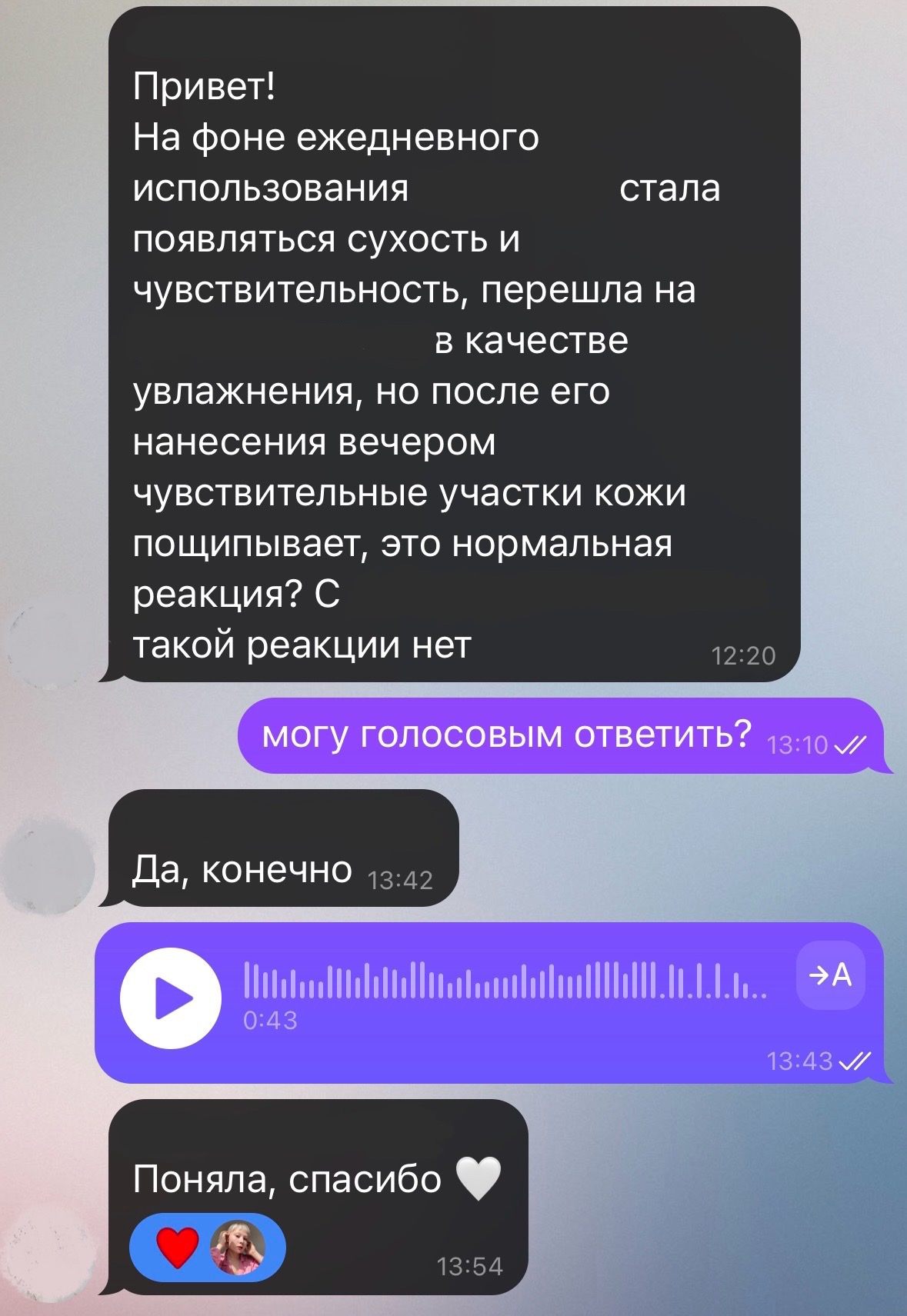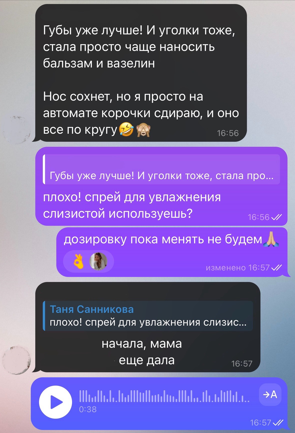 Во-вторых, такой формат консультаций позволяет мне тщательно изучить ваш анамнез, качество и динамику кожи и максимально грамотно скорректировать уход и терапию.