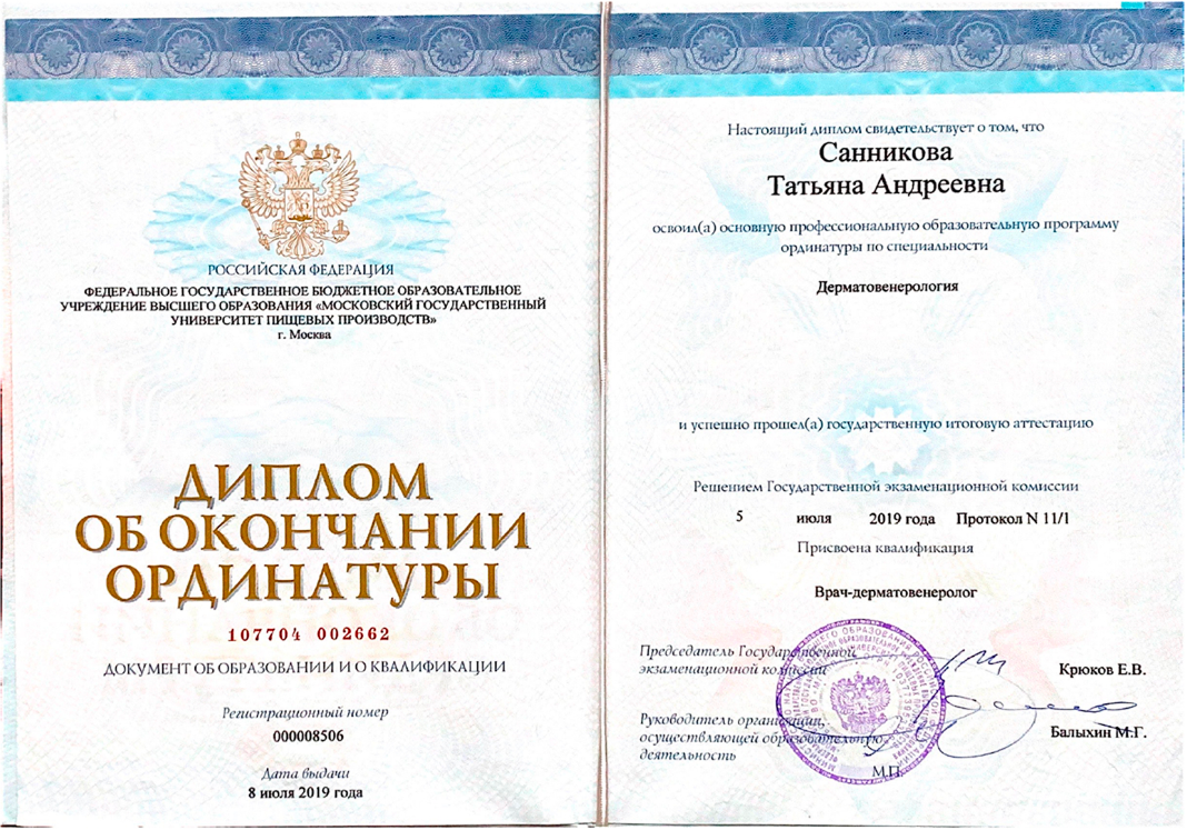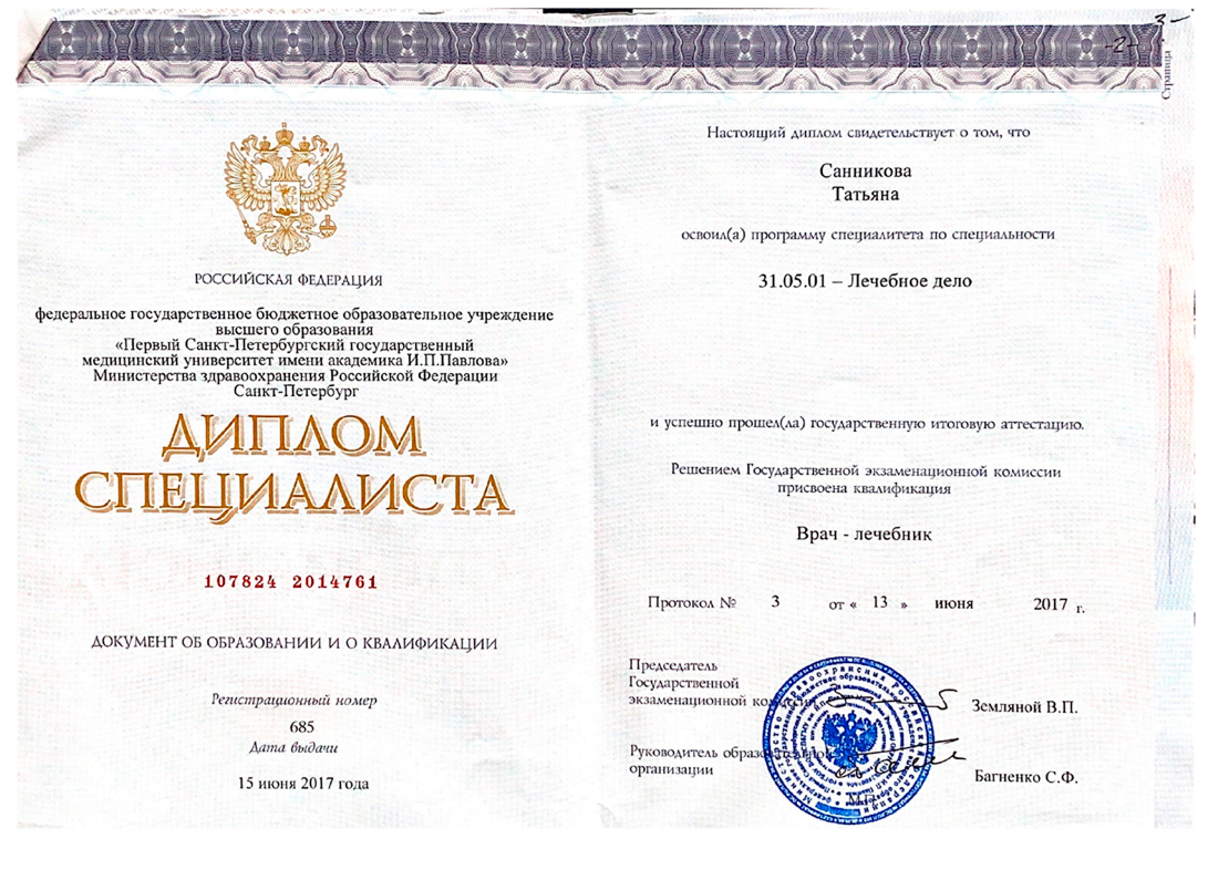 диплома о высшем медицинском образовании